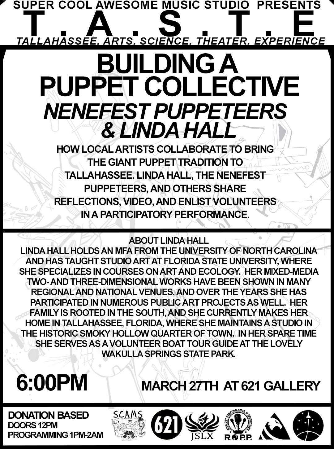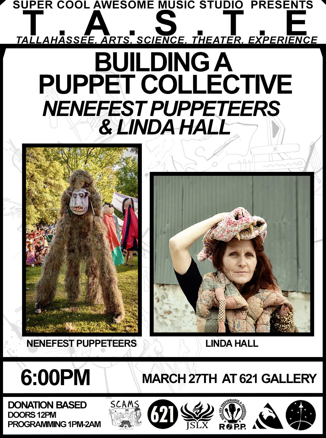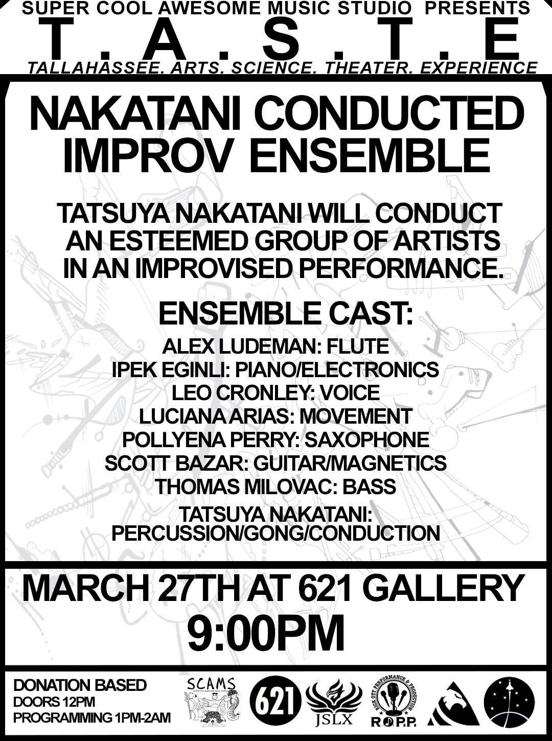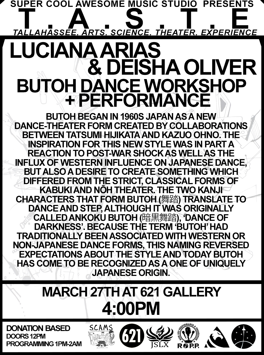 The Tallahassee Arts, Science, Theater Experience (T.A.S.T.E.) is an entirely donation-based, non-profit festival concept created by S.C.A.M.S. The first annual experience is set for March 26th-28th, 2026. T.A.S.T.E. is registered as an incorporated non-profit organization awaiting 501c3 status.
