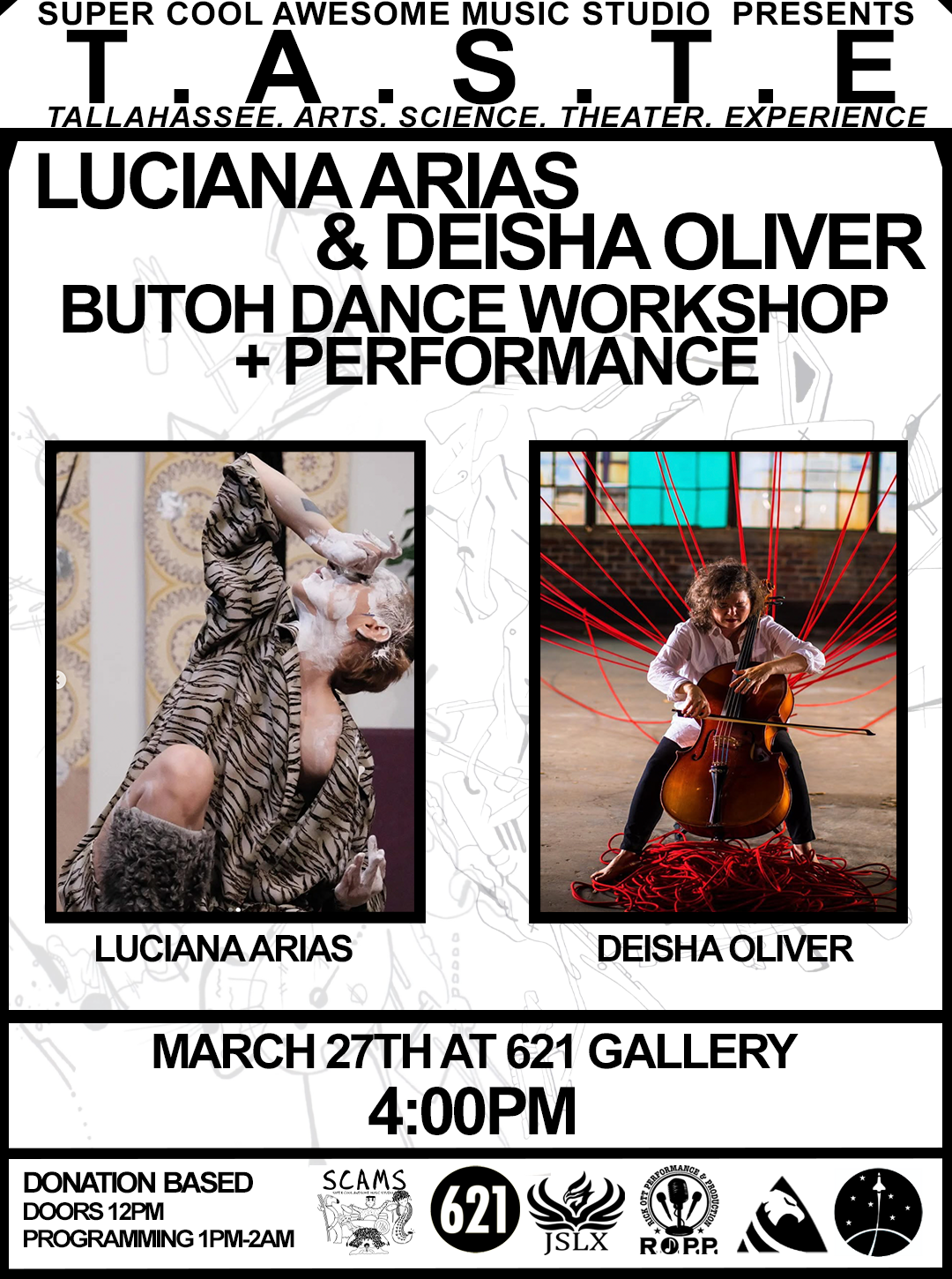 IT IS REQUIRED to make a donation at the designated donation table located within 621 Gallery in order to view the programming for T.A.S.T.E.; however, the amount donated is entirely up to individual guests and can be accepted via QR codes (allowing for choice of digital payment) or cash. Any amount, beginning with 1¢, will be accepted. If you do not have any money to offer as a donation, please talk to the person at the table and a creative solution will be negotiated.We will NOT turn ANYONE away for LACK of FUNDS.